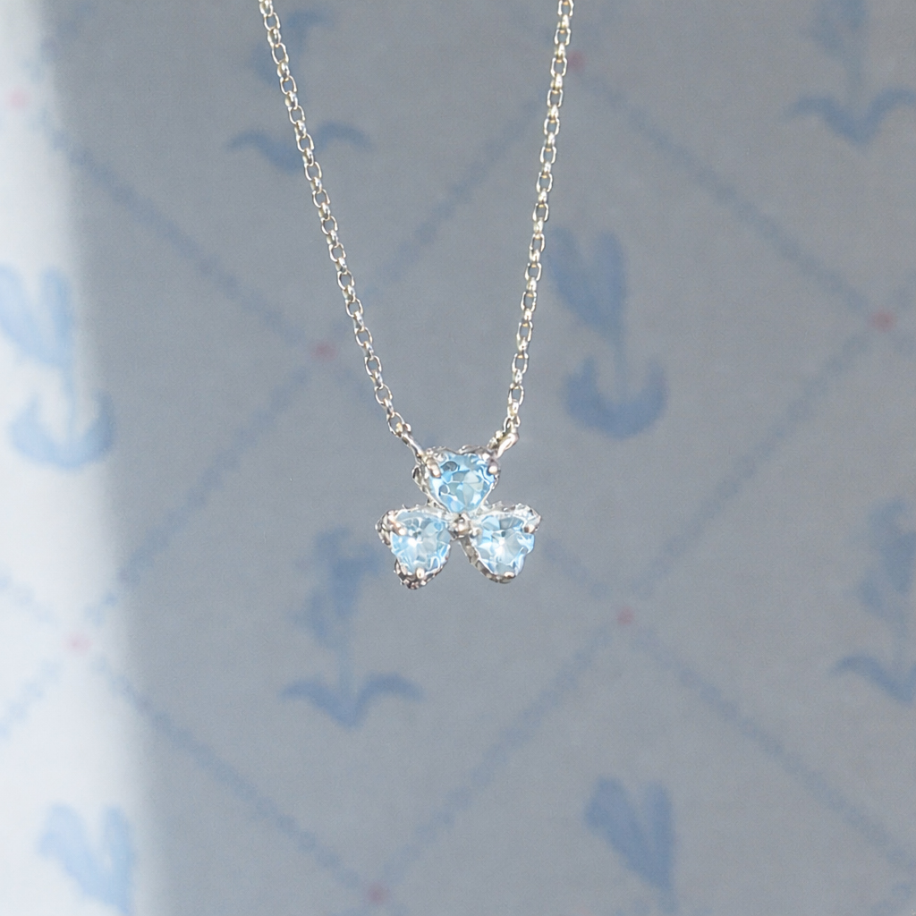3개의 하트 토파즈 원석으로 제작된 목걸이입니다.