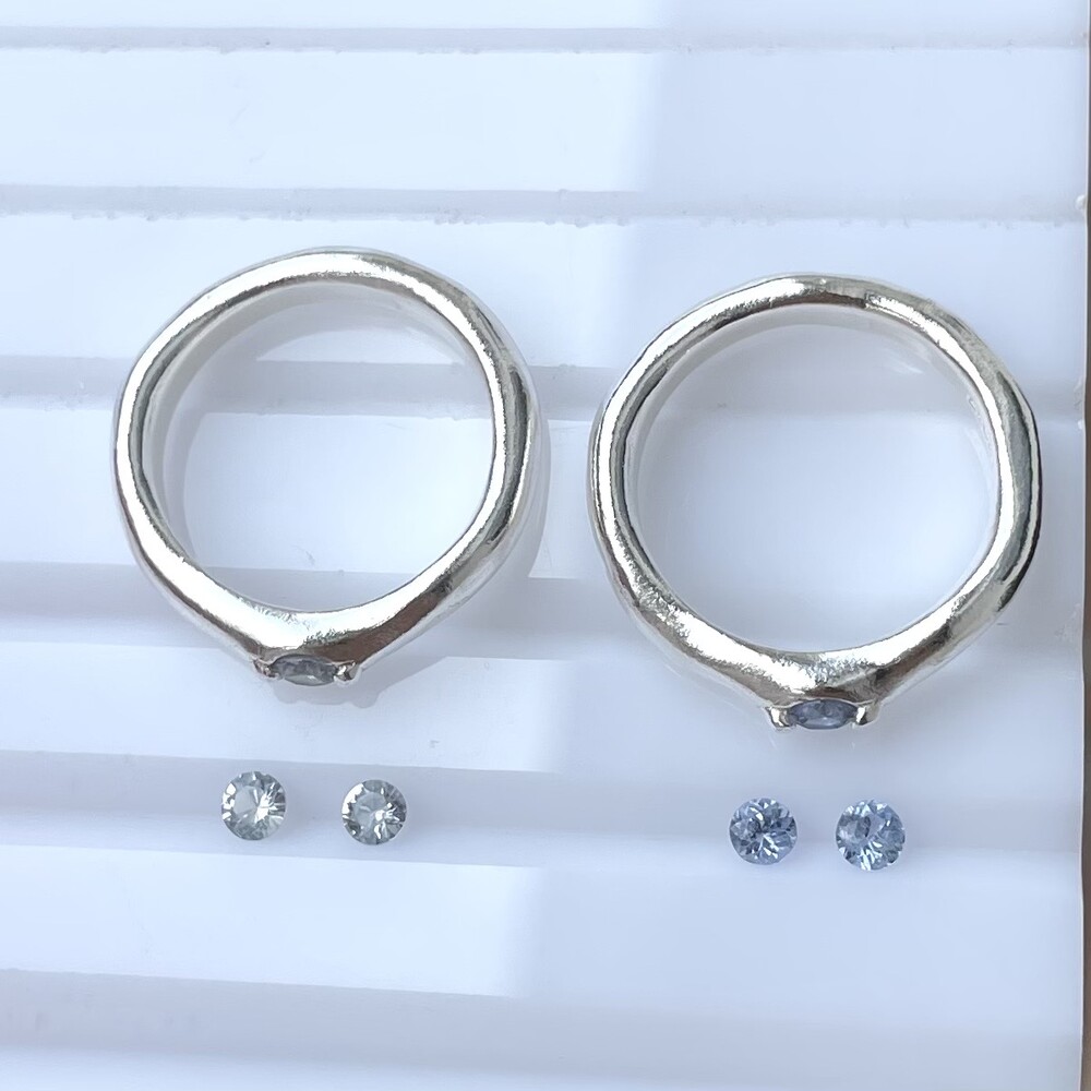 난발의 형태와 반지의 두께, 원석 색상의 차이가 있습니다.
