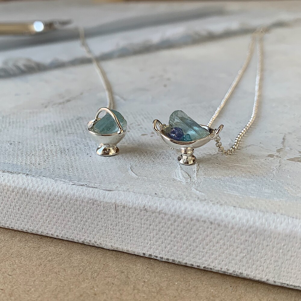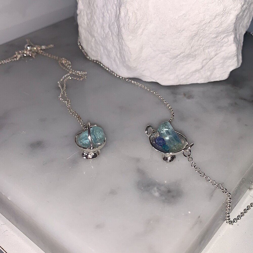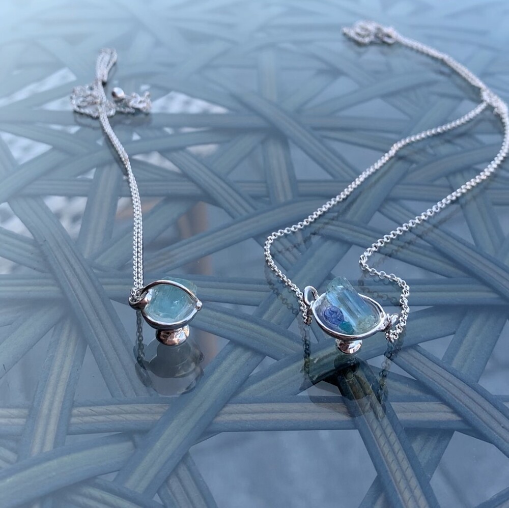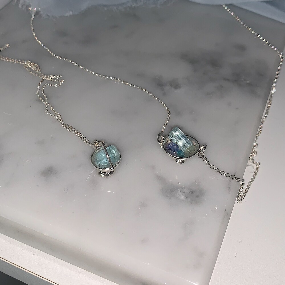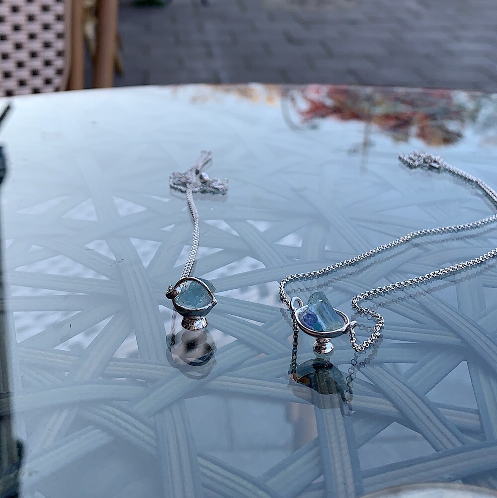 자연 그대로의 원석 아쿠아마린으로 제작한