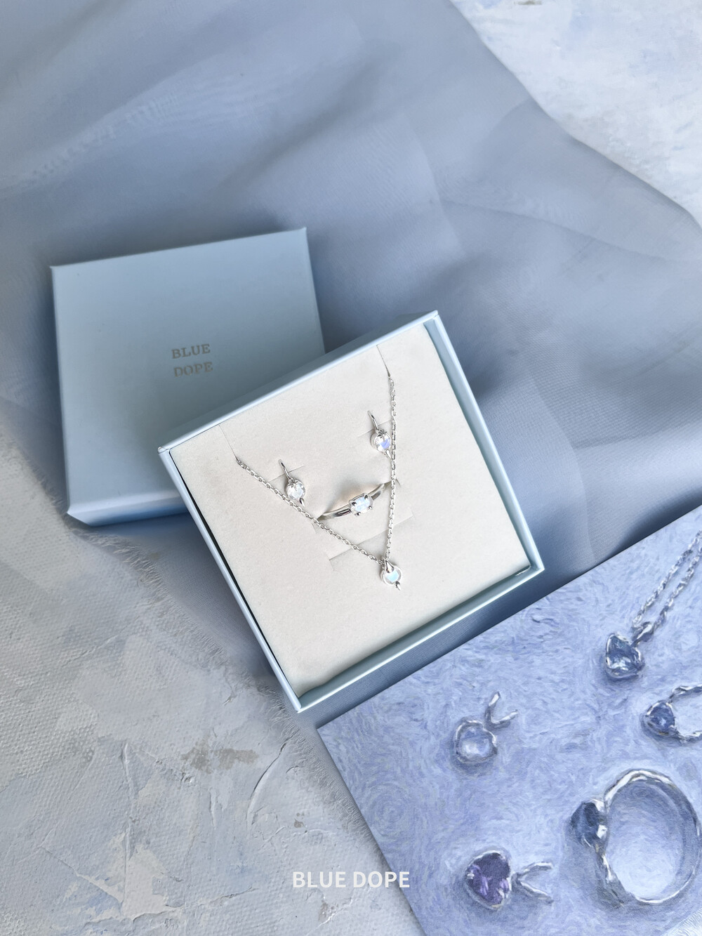 투명하면서도 오묘한 블루빛이 신비로운 분위기를 표현해요.