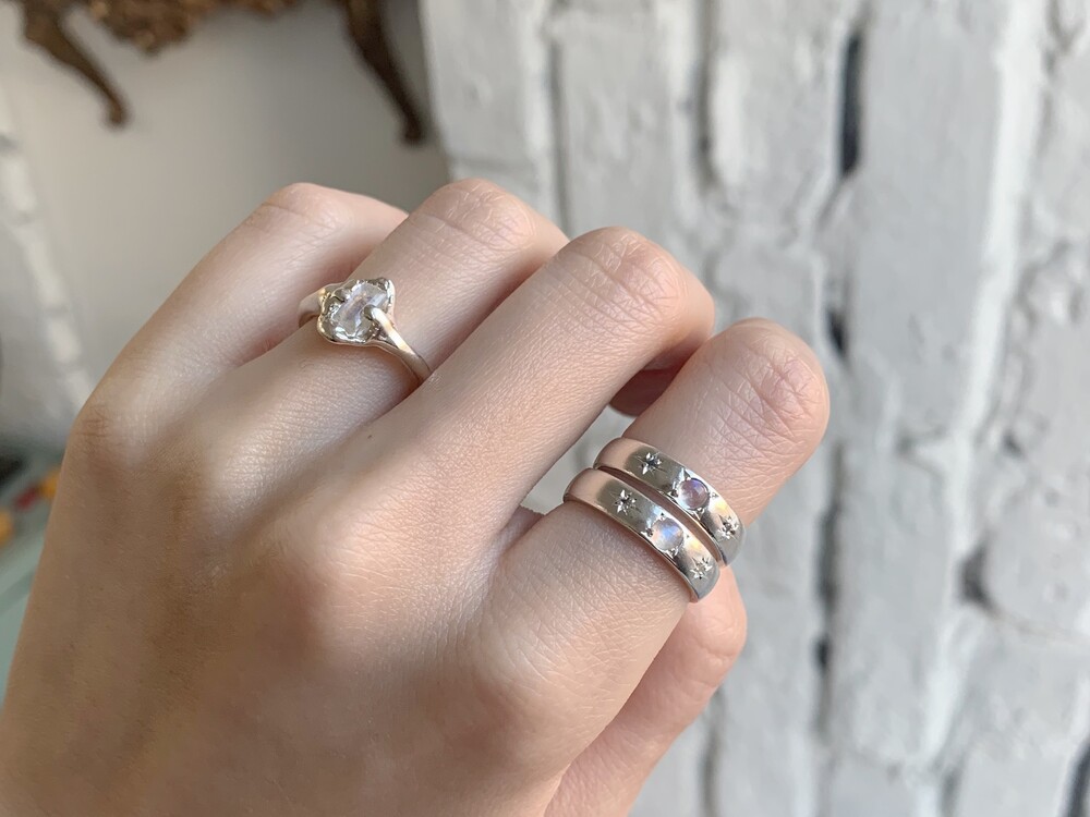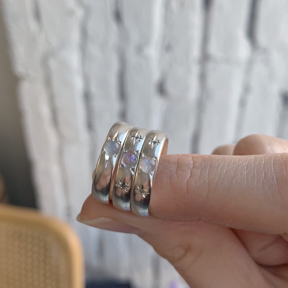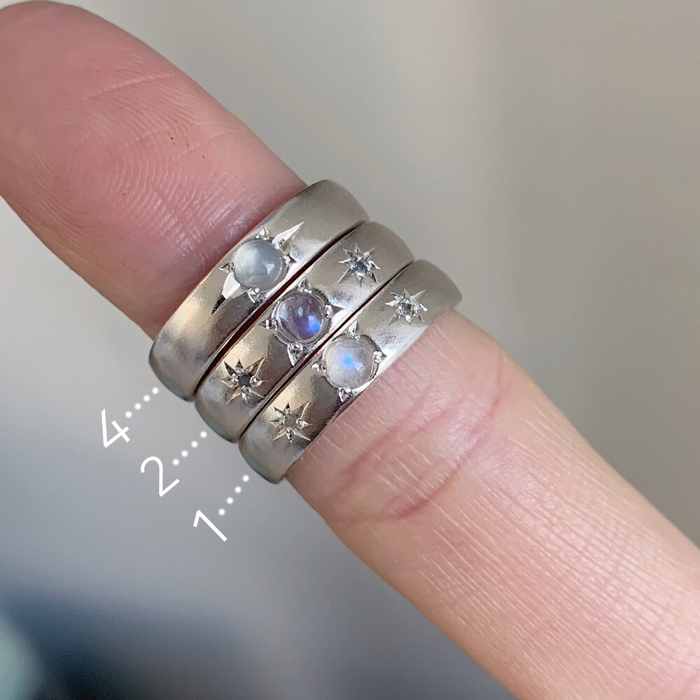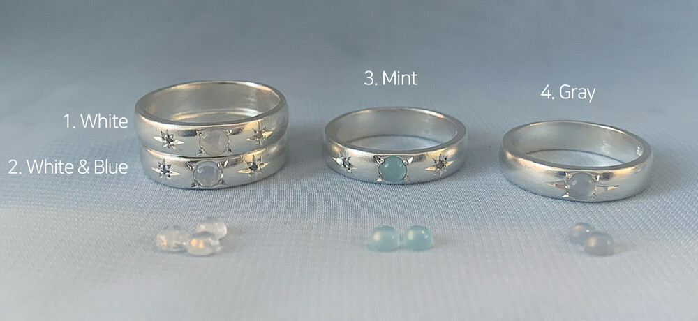 1,2번은 동일한 등급의 레인보우 문스톤을 사용하며 세팅 방법에만 차이가 있습니다