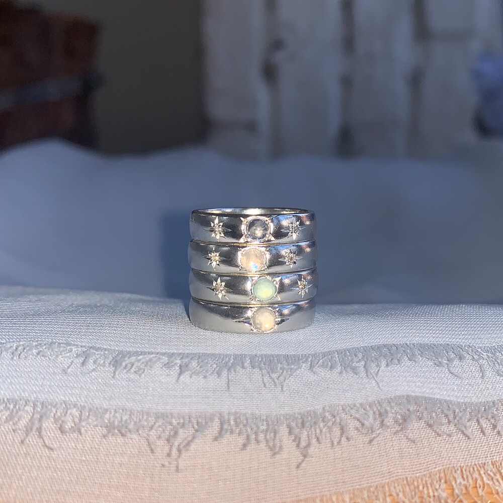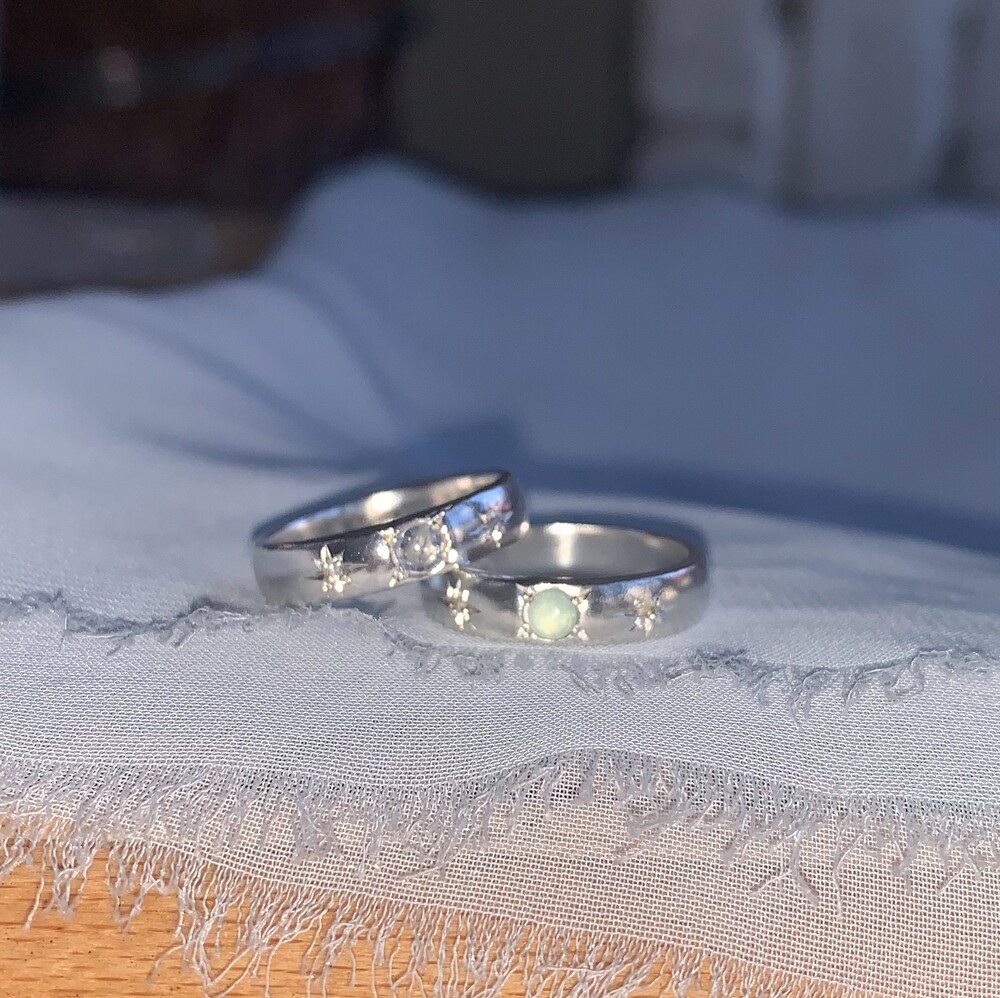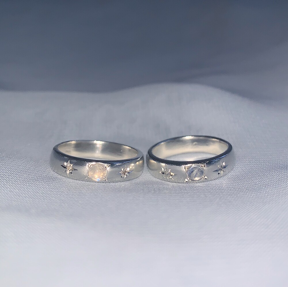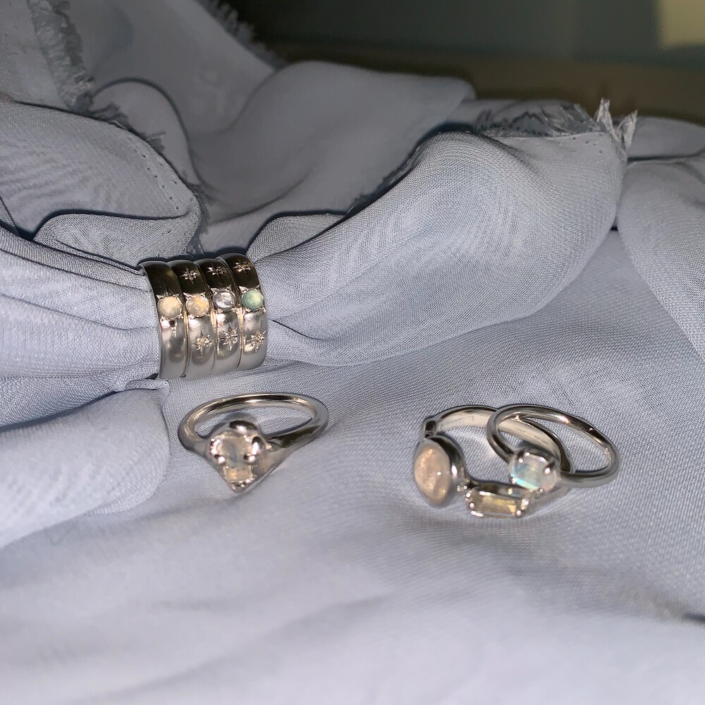 1,2번은 동일한 등급의 레인보우 문스톤을 사용하며 세팅 방법에만 차이가 있습니다