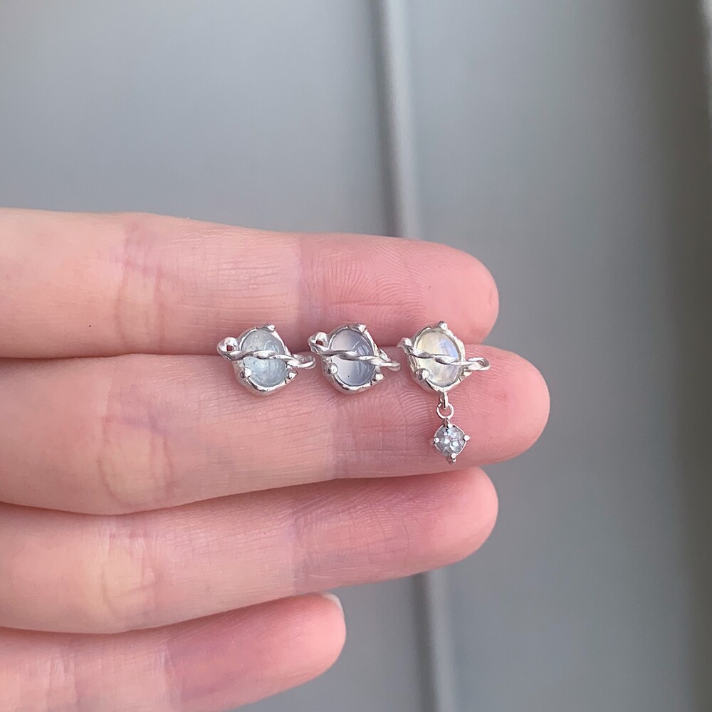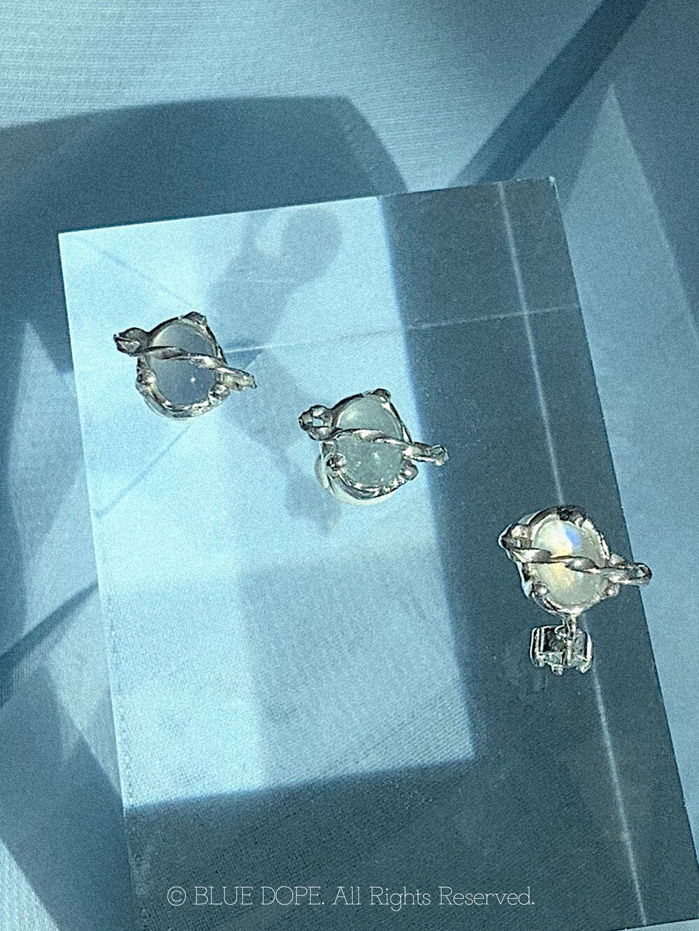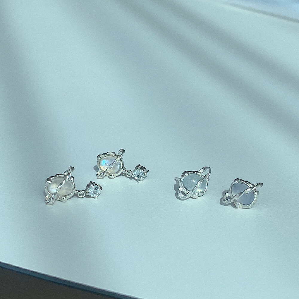 둥근 컷팅의 천연석과 여리한 와이어로 이루어진 이어링을 소개합니다.