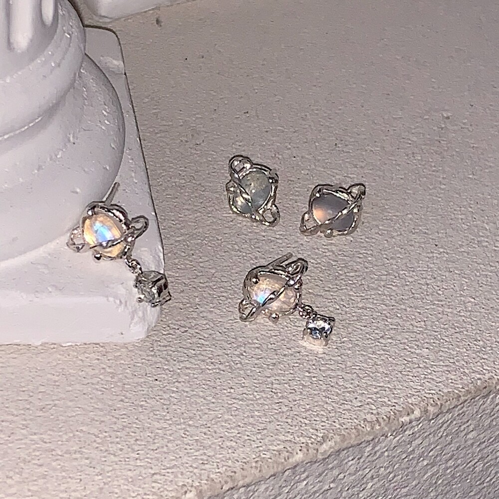 레인보우 문스톤 아래에는 작은 아쿠아마린이 포인트로 자리해 은은한 생기를 더합니다.