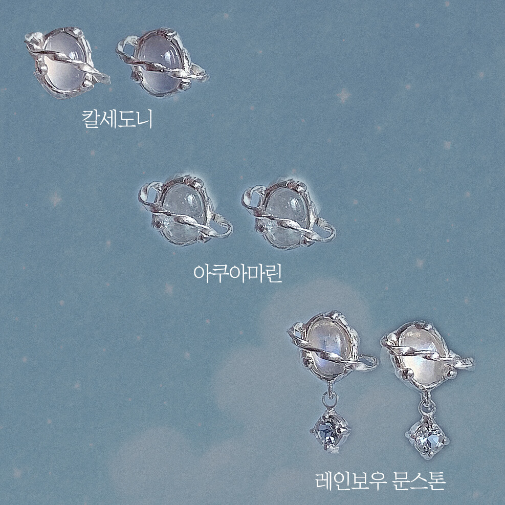 아쿠아마린 – 칼세도니 – 레인보우 문스톤 순으로 배치되어있습니다.