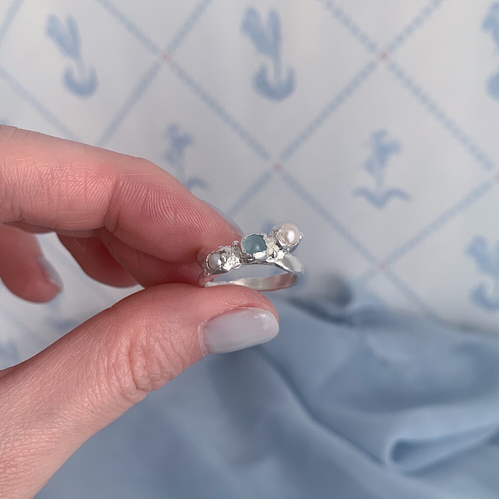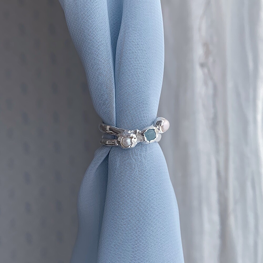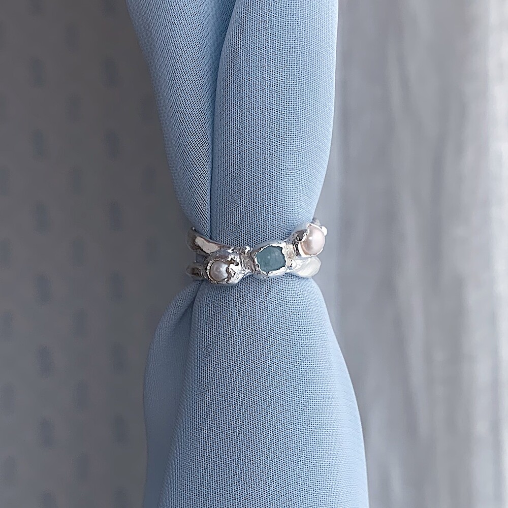 중앙에는 바다를 닮은 아쿠아마린이 자리하고,