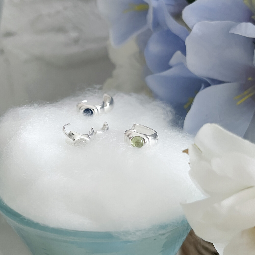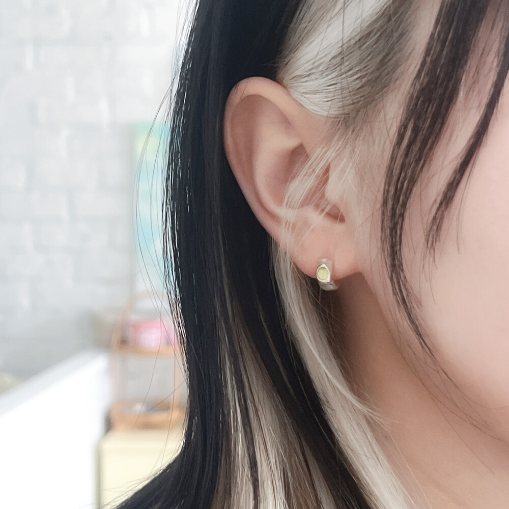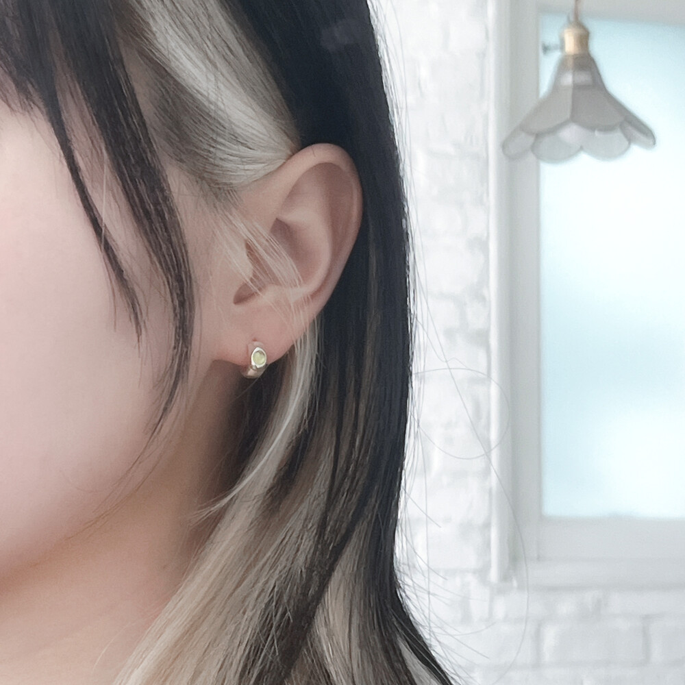 캐보션이 세팅된 이어링인만큼 착용했을 때 심플하고 부드러운 이미지를 줍니다.