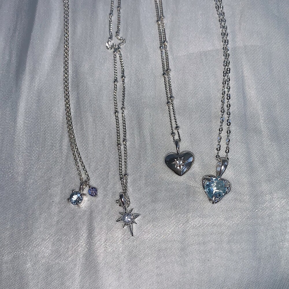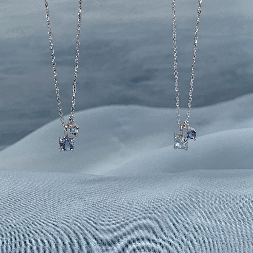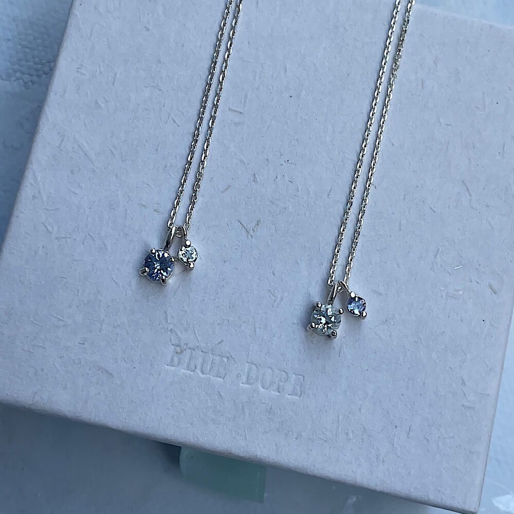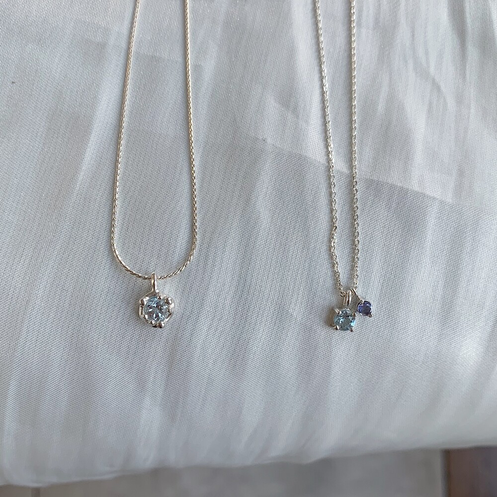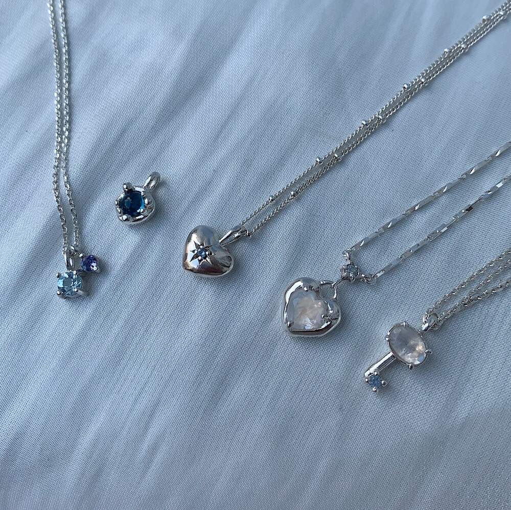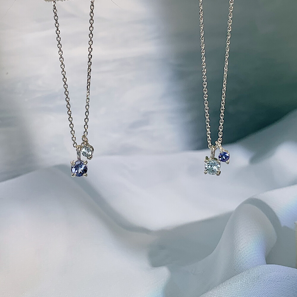 블루톤의 작은 원석들이 심플한 포인트가 되며
