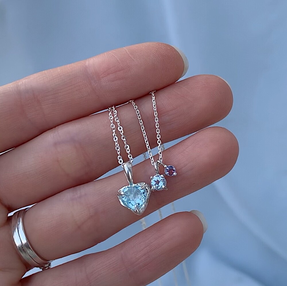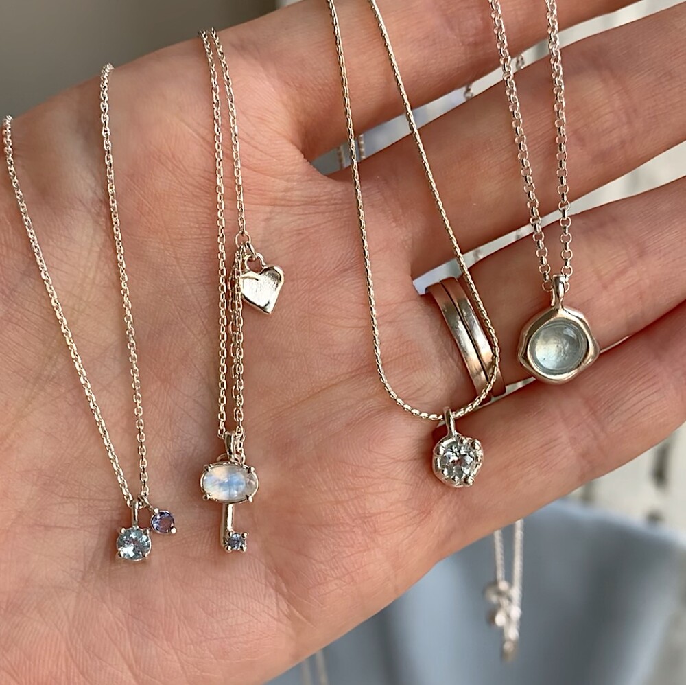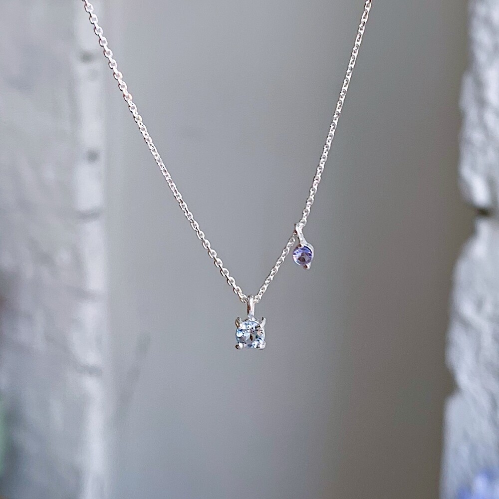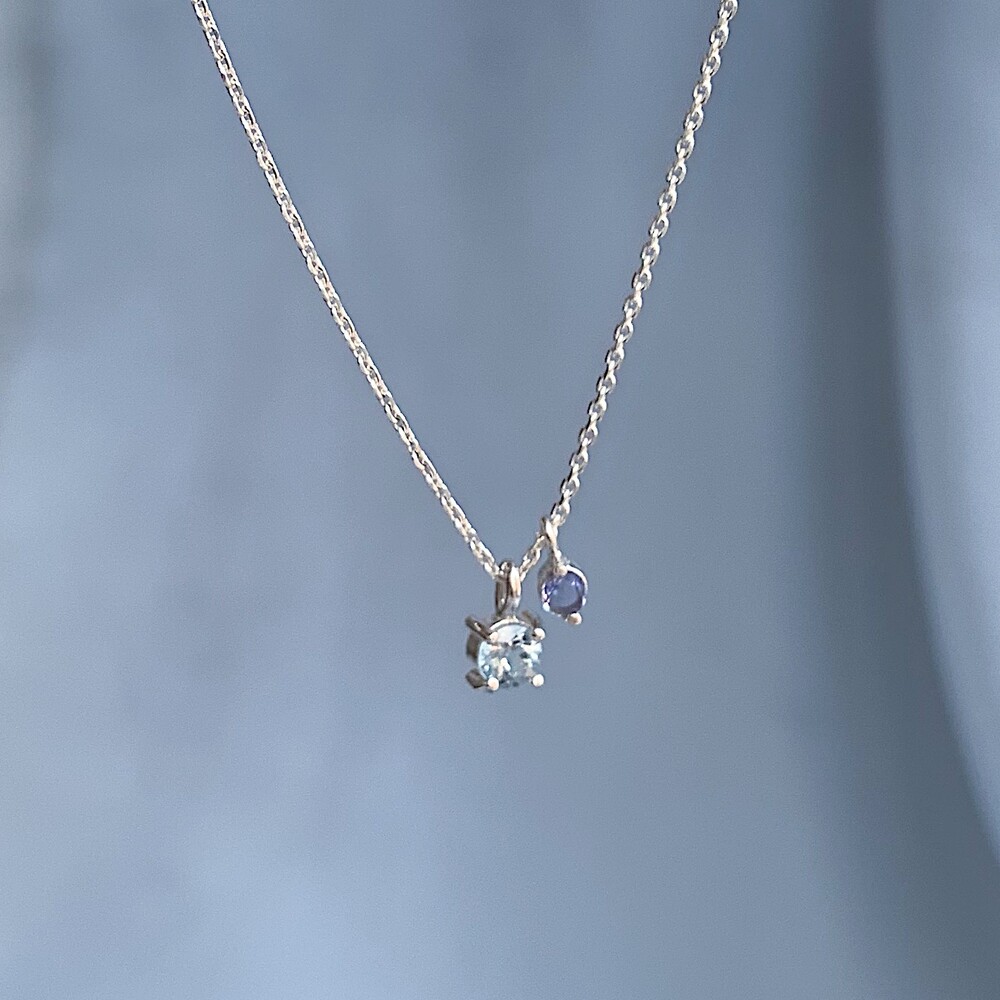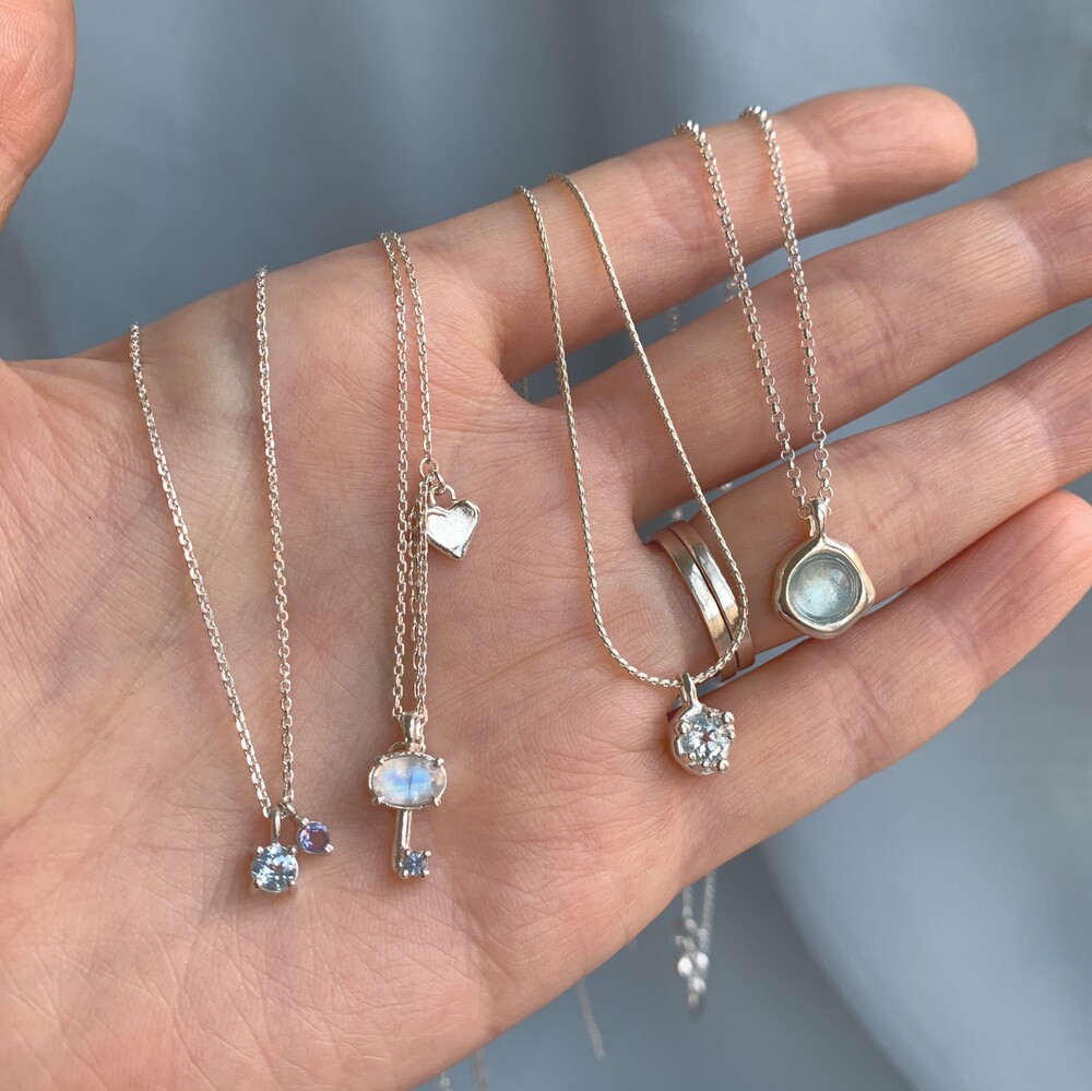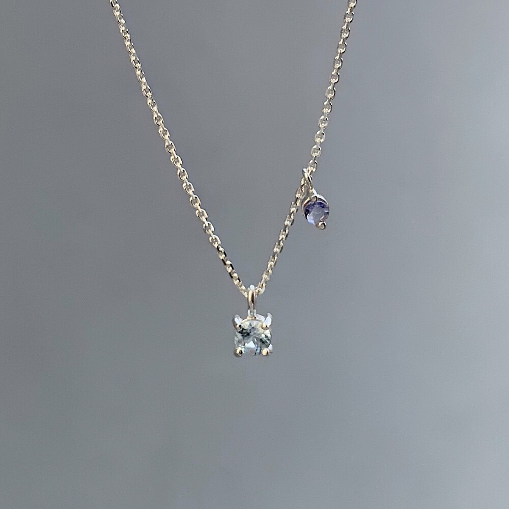 블루톤의 작은 원석들이 심플한 포인트가 되며