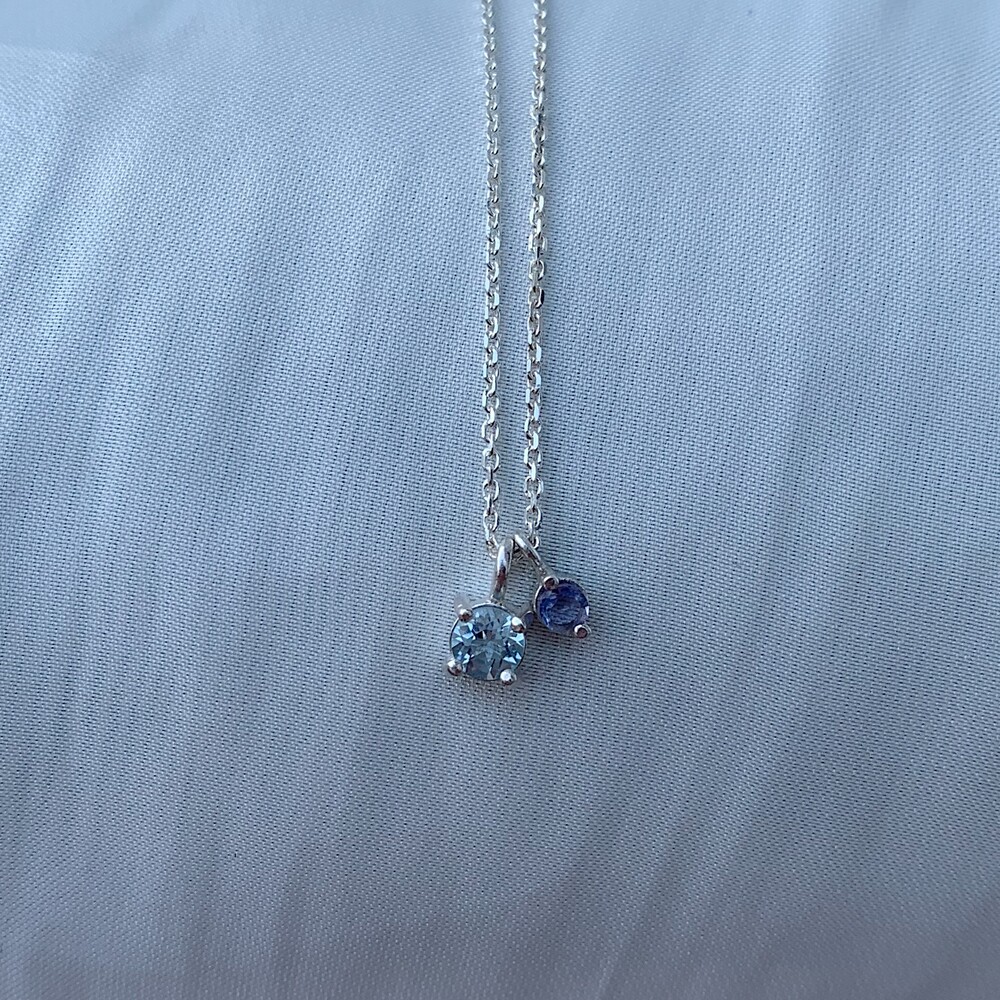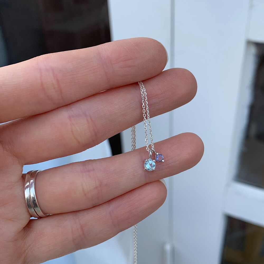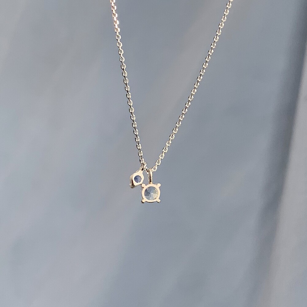 작은 원형의 블루톤 원석들로 제작된 round mini necklace