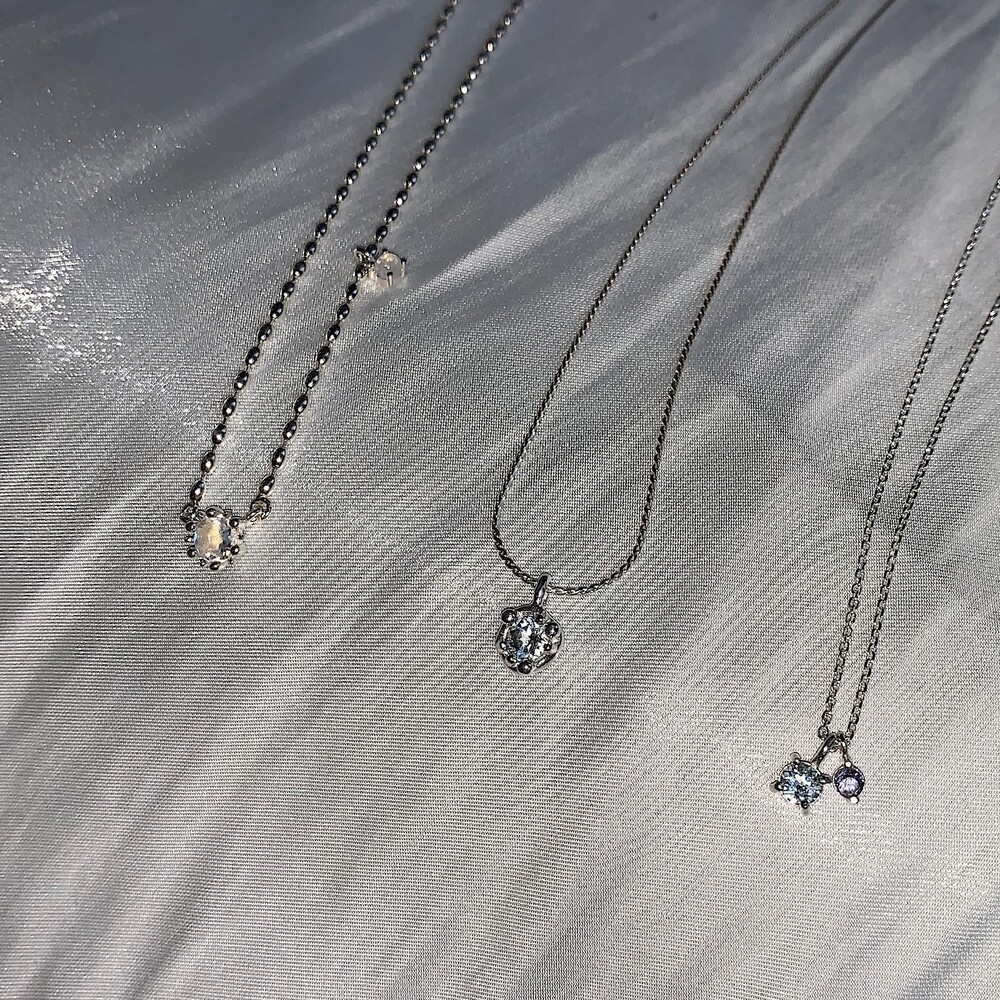 작은 원석은 체인에 고정이 되고 큰 원석은 체인에서 자유롭게 움직입니다