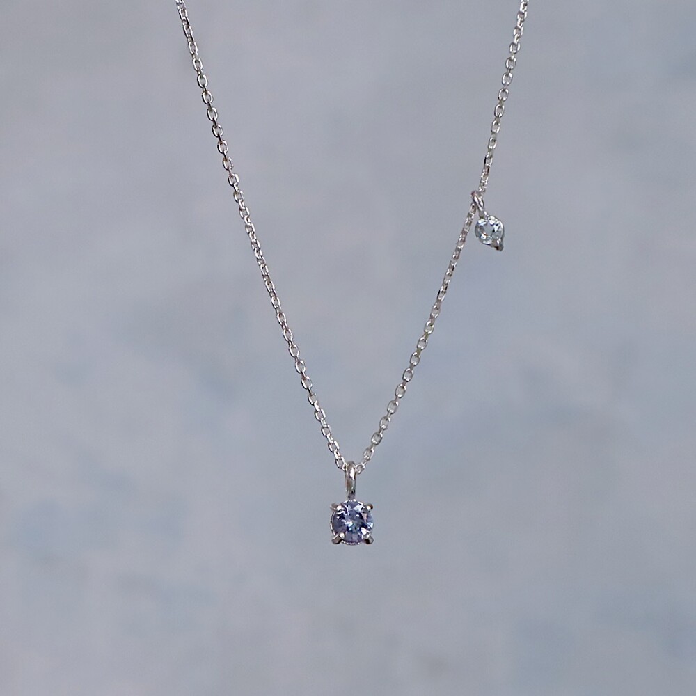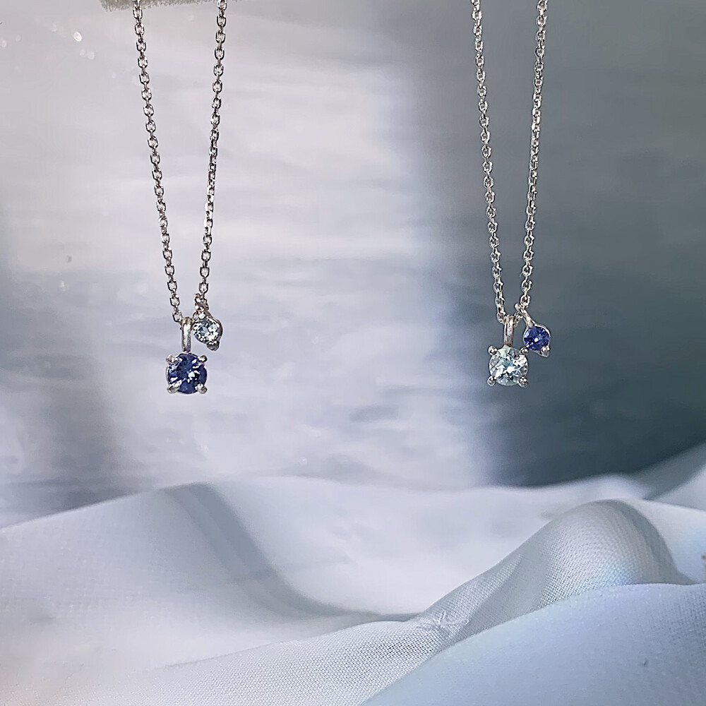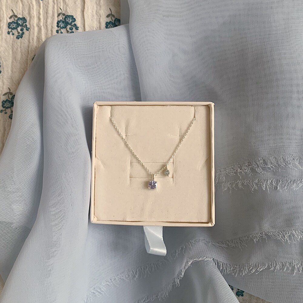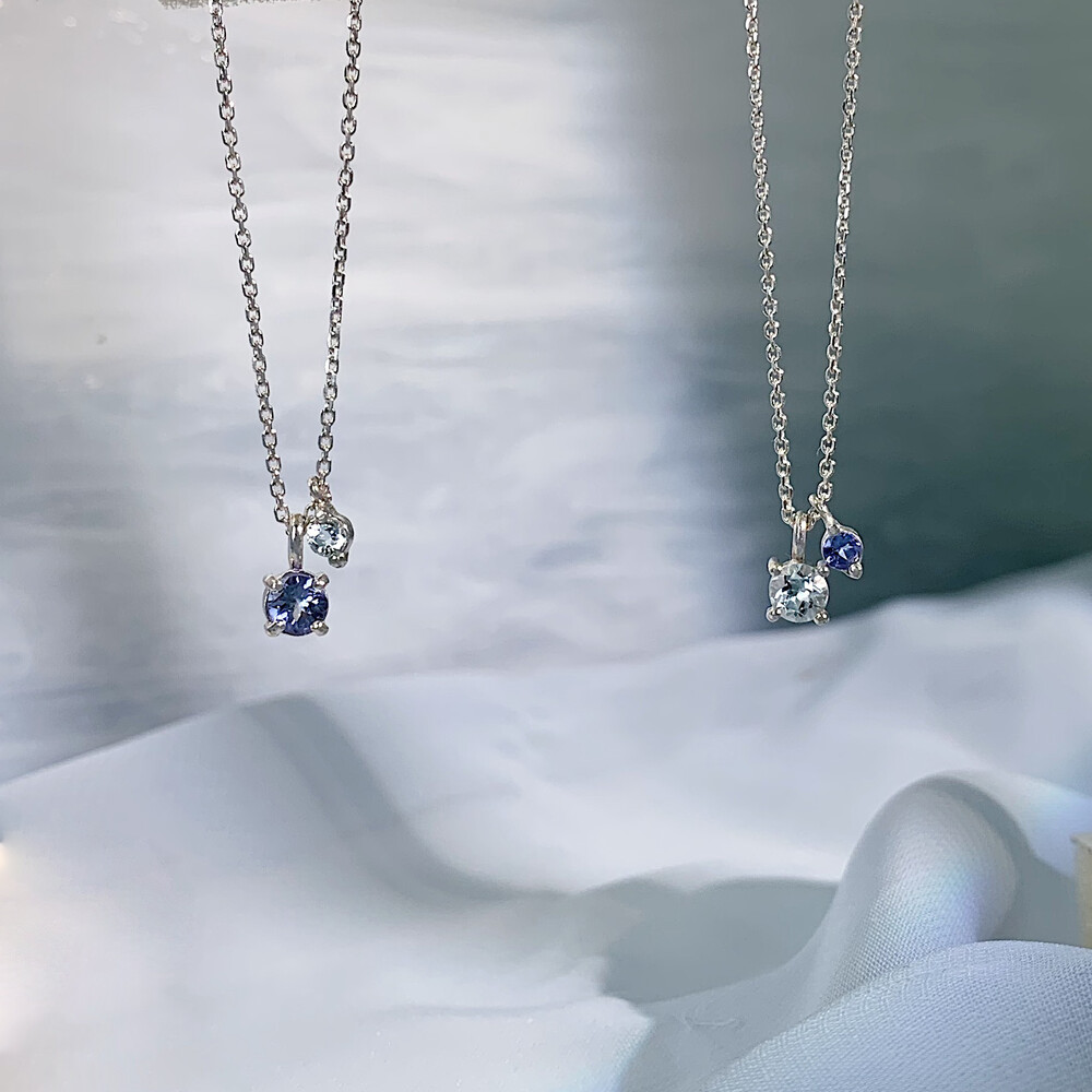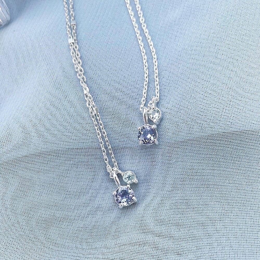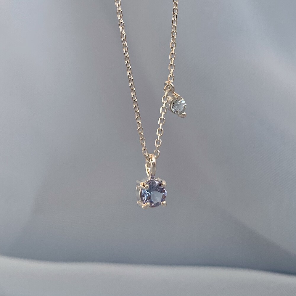청보라빛의 탄자나이트와 연한 아쿠아마린이 세팅된 심플한 목걸이 입니다.
