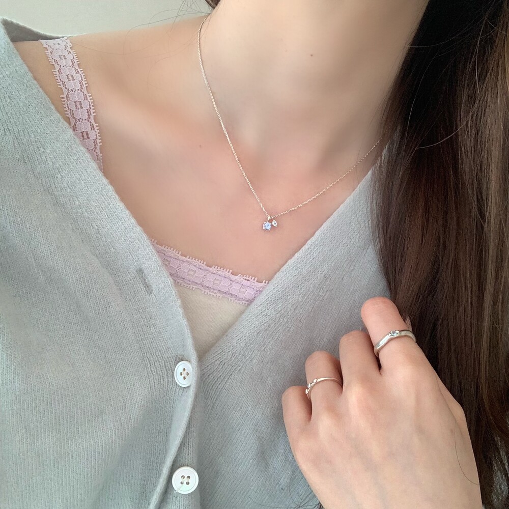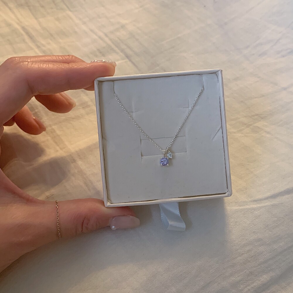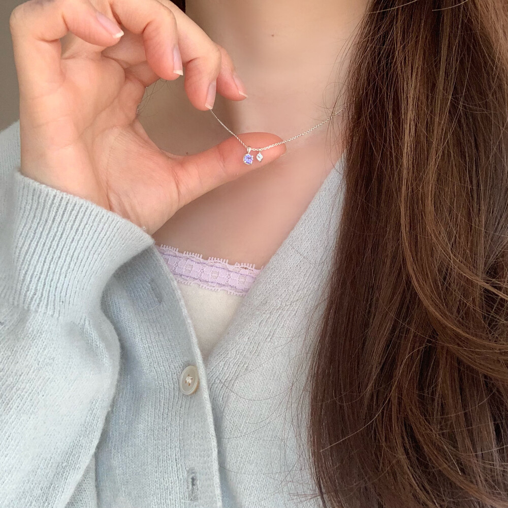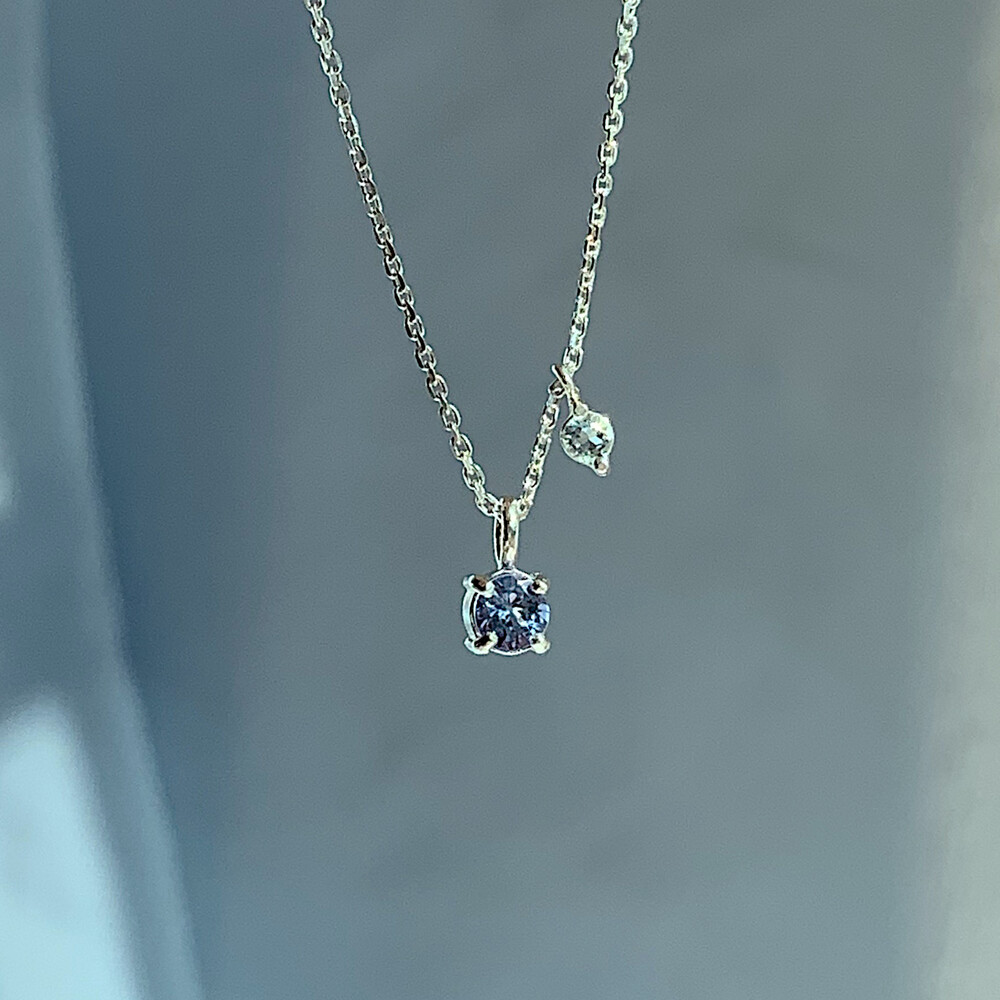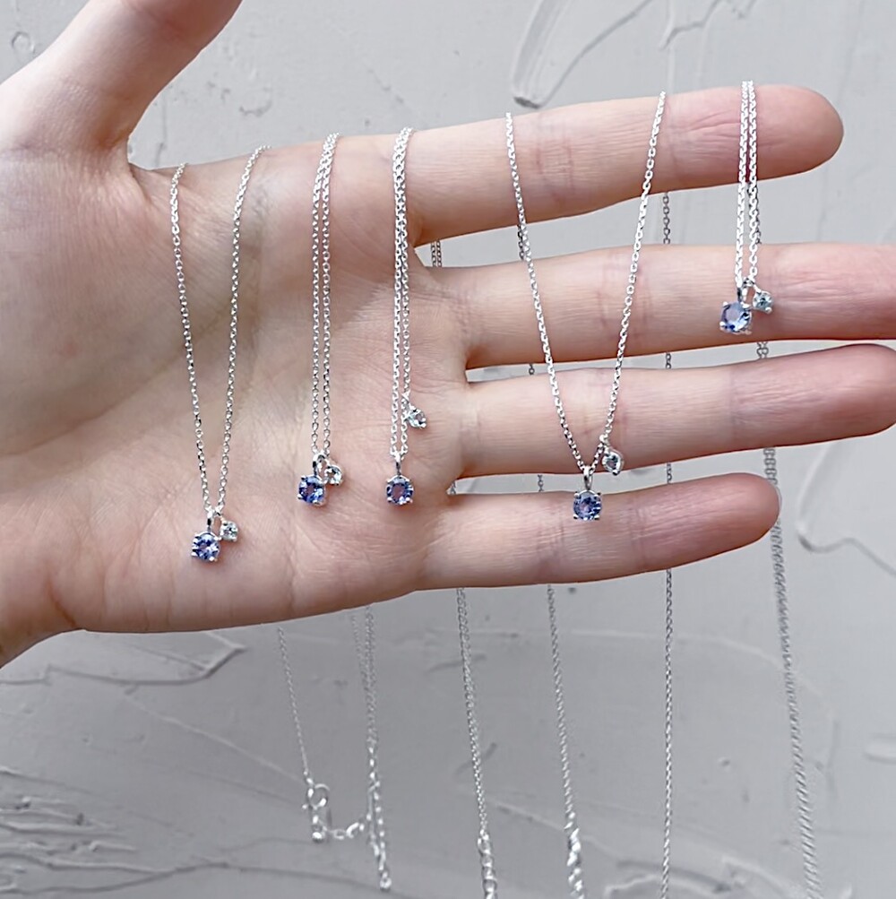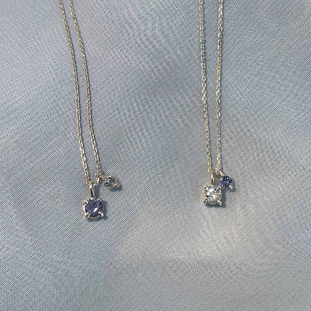 청보라빛의 탄자나이트와 연한 아쿠아마린이 세팅된 심플한 목걸이 입니다.
