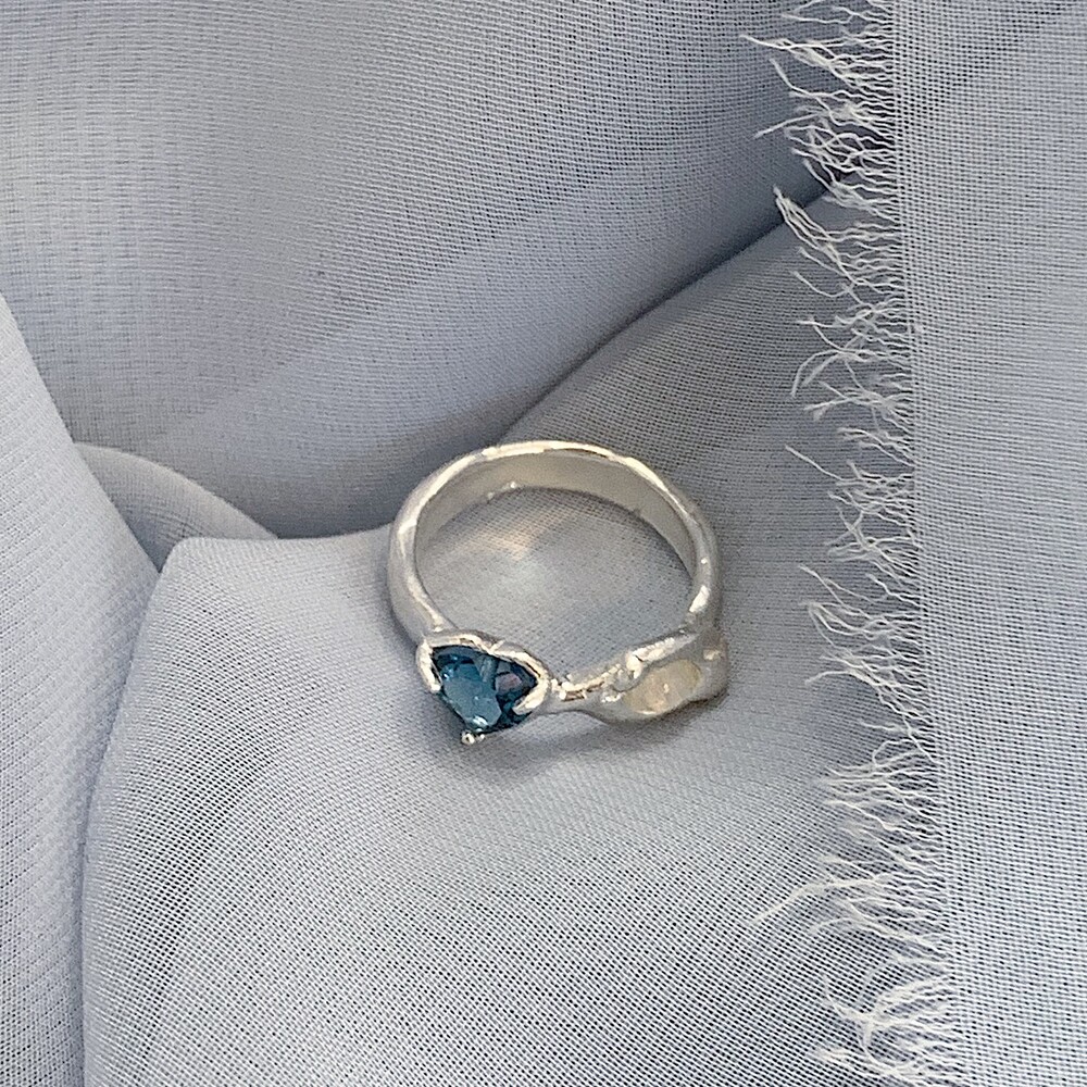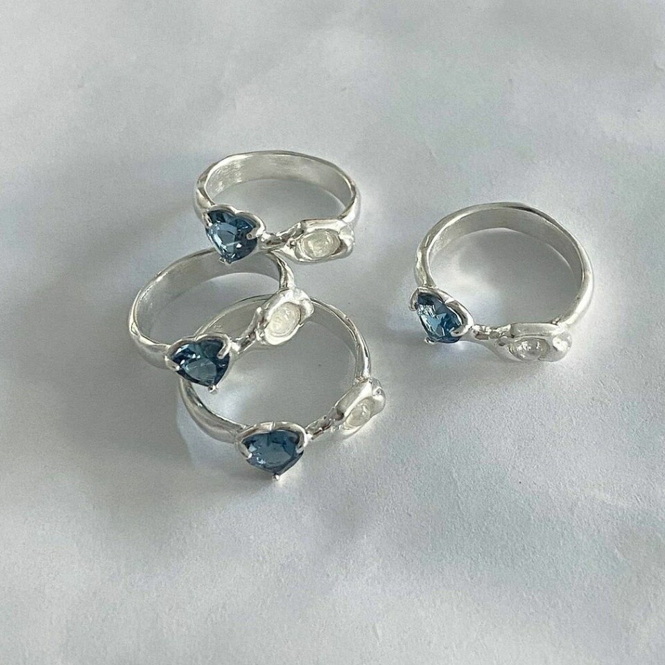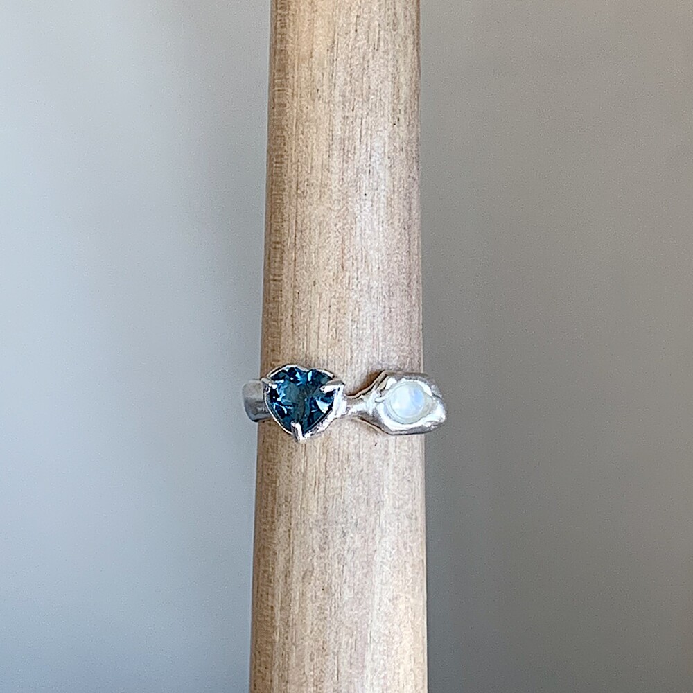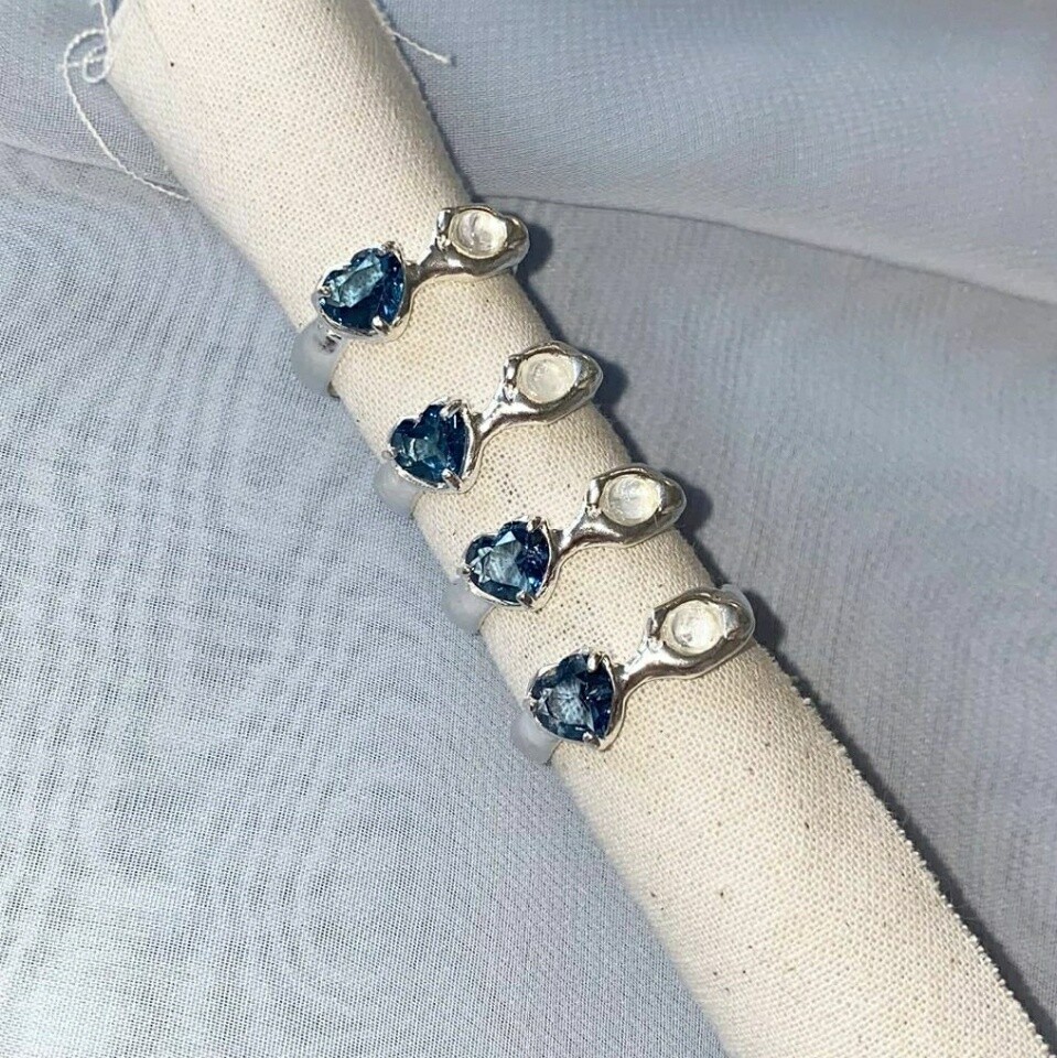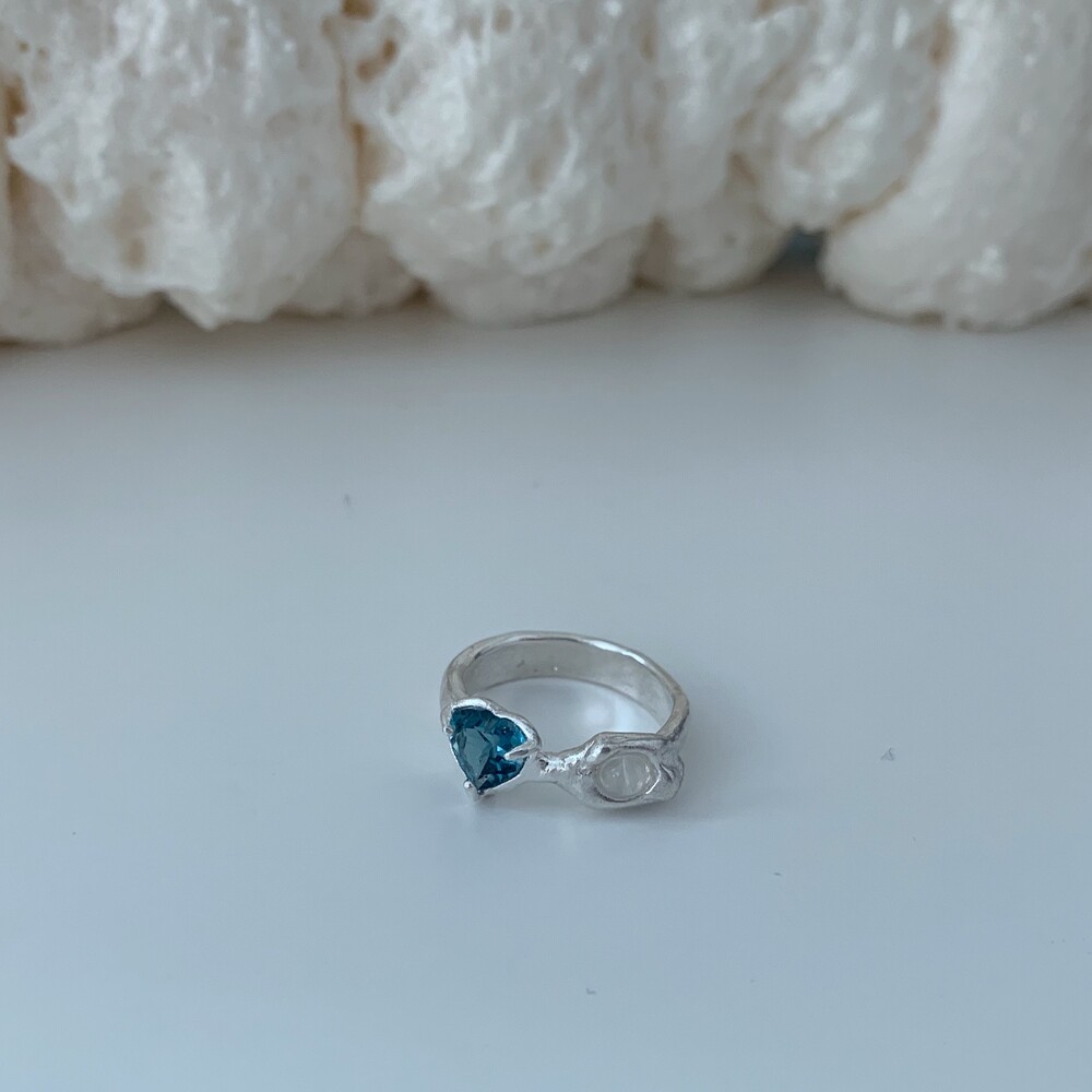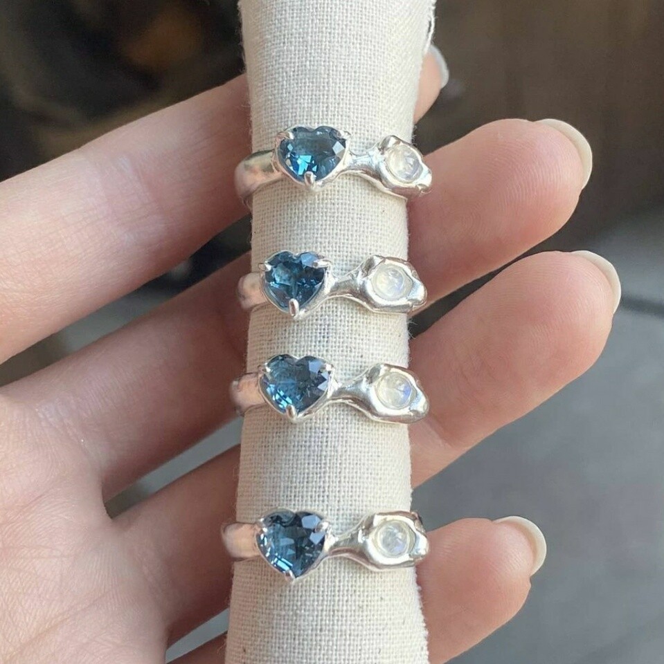 하트 컷팅이 되어있는 런던 블루 토파즈와 레인보우 문스톤입니다
