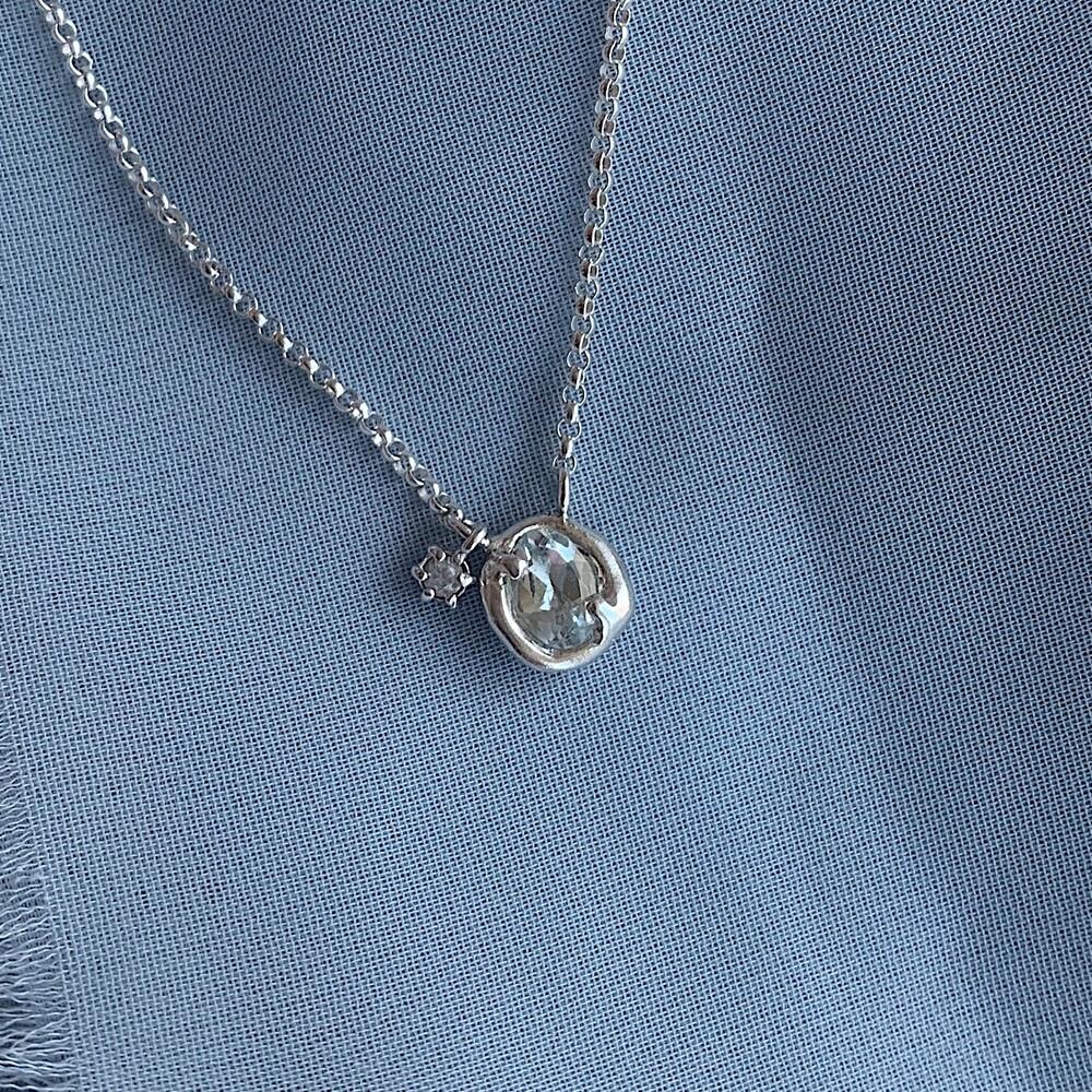 밀키한 화이트톤의 작은 사파이어가 세팅되어있어요